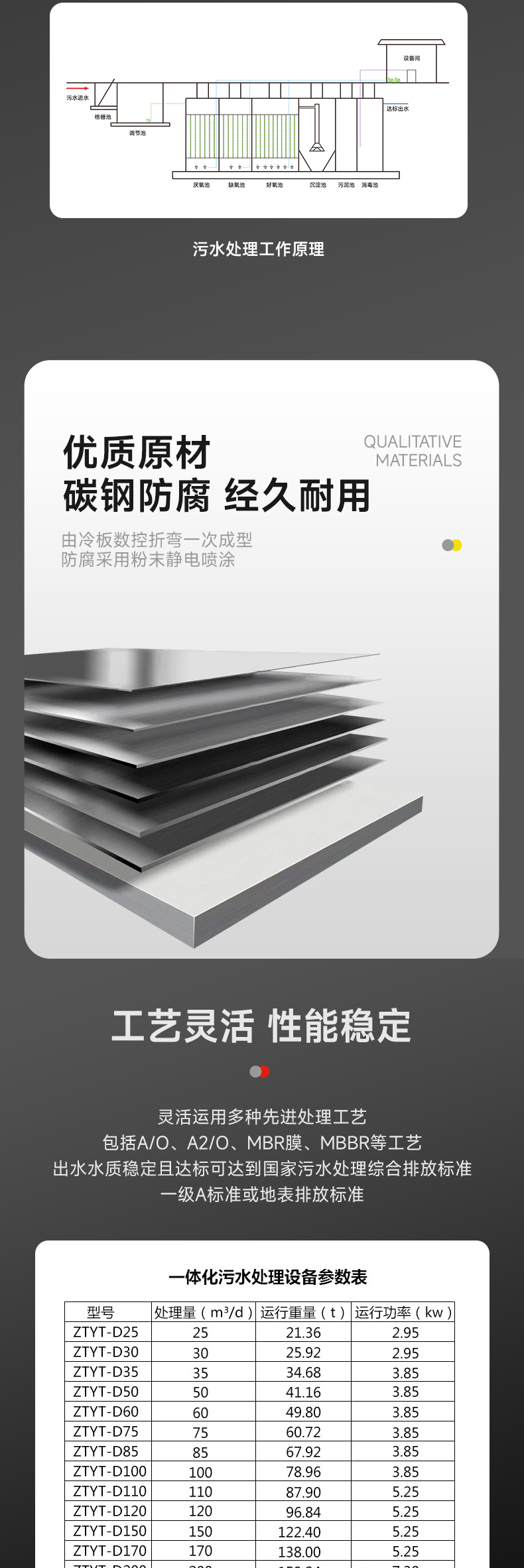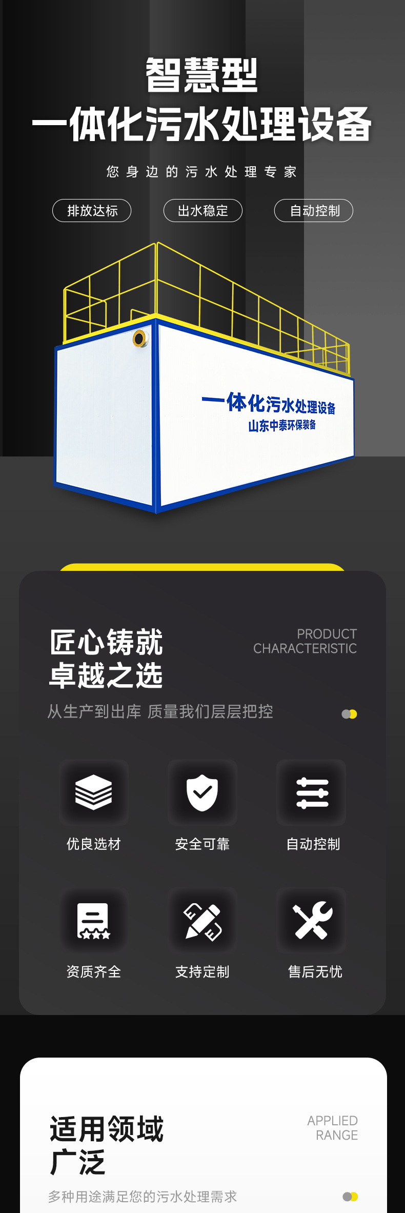- 一體化地埋式污水處理設備,是新的水處理產品,可埋入地表下,一體化地埋式污水處理設備上方地表可作為綠化或其他用地,不需要建房及采暖和保溫,全自動控制,不需人員管理無污泥回流操作簡單,維修方便。適用范圍廣,處理效果好。